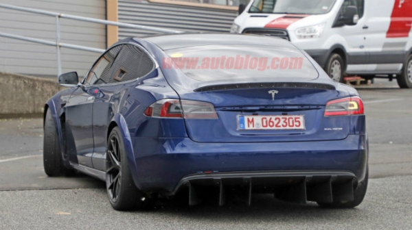 앞서 서킷 테스트 중 스파이샷에 포착된 테슬라 모델 S 플레이드를 보면, 전면부는 프론트범퍼 공기흡입구를 넓혔고 측면은 오버펜더와 더 크고 넒은 휠&타이어를 적용했다. 또 후면부에는 트렁크 리드 상단에 확장된 리어 스포일러 및 역동적인 디퓨저가 예사롭지 않은 포스를 풍긴다.