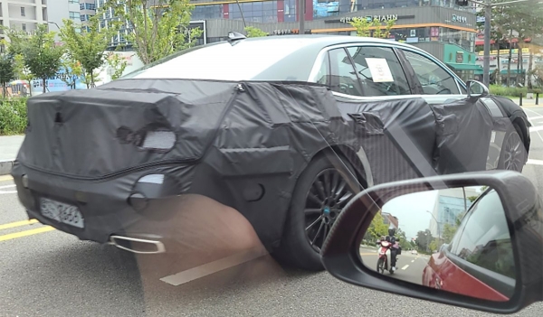 후면부는 양산형 테일램프가 장착되지 않은 것으로 보이는데, 위장막으로 철저히 감싸 구체적인 디자인 파악은 사실상 힘들다. 또 트렁크 리드가 길게 솟아오른 것으로 보아 신형 G80처럼 스포티한 일체형 스포일러 디자인이 반영됐을 가능성도 있다.