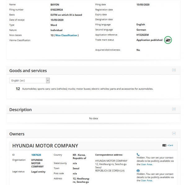 앞서 현대차는 지난 8월 유럽 특허청에 '바이욘' 상표를 출원한 바 있으며, 차명 바이욘은 프랑스 남서부에 있는 ‘바욘(Bayonne)‘에서 따왔다. 특히, 해외에서 바이욘 티저이미지가 공개된 지 불과 5시간 만에 위장막 테스트카가 포착되면서 더욱 관심이 쏠리고 있다.