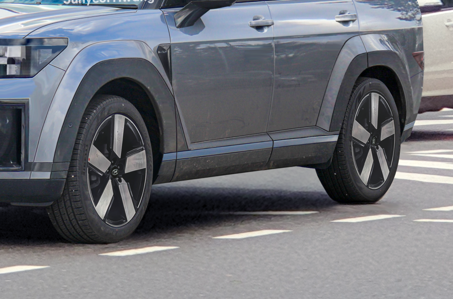 측면부는 마치 랜드로버 ‘신형 디펜더 110‘ 모델을 연상케 하는 각진 실루엣과 비율, 디테일 요소 등이 돋보인다. 특히, 경쟁모델인 기아 쏘렌토에 판매량이 밀린 만큼, 차체를 팰리세이드 수준으로 대폭 키운 점도 주목할 만한 요소다.