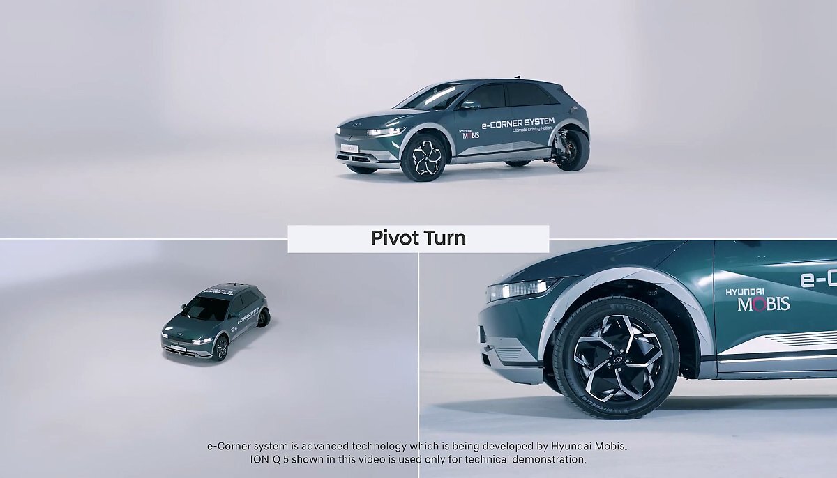 현대모비스는 CES 2023에서 미디어 쇼케이스를 열고 독특한 동작을 가능하게 하는 기술인 'e-코너'를 시연하는 모습을 공개했다.