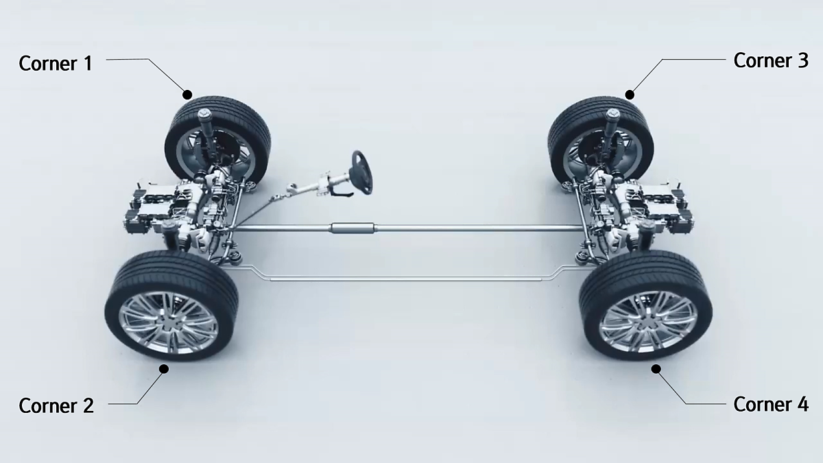 하지만 이들 차량의 뒷바퀴는 최대 10도 정도 밖에 움직이지 않는다. 반면, 현대모비스의 e-코너는 모든 바퀴가 90도씩 돌아간다. 게다가 좌우 바퀴를 각기 다른 방향으로 돌릴 수도 있어 기존 자동차에선 불가능했던 동작을 구현하는 것이 가능하다.