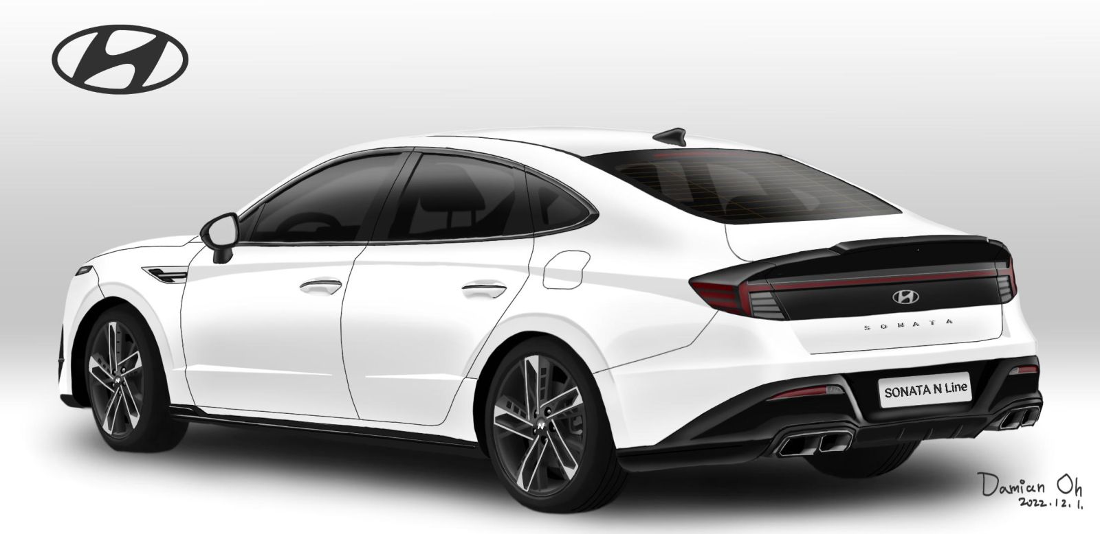 후면부도 전면과 마찬가지로 큰 폭의 변화가 예상된다. 기존 쏘나타는 트렁크리드를 따라 트렁크 중앙에서 연결되는 커넥티드 테일램프 디자인으로 다소 카리스마가 부족했다.