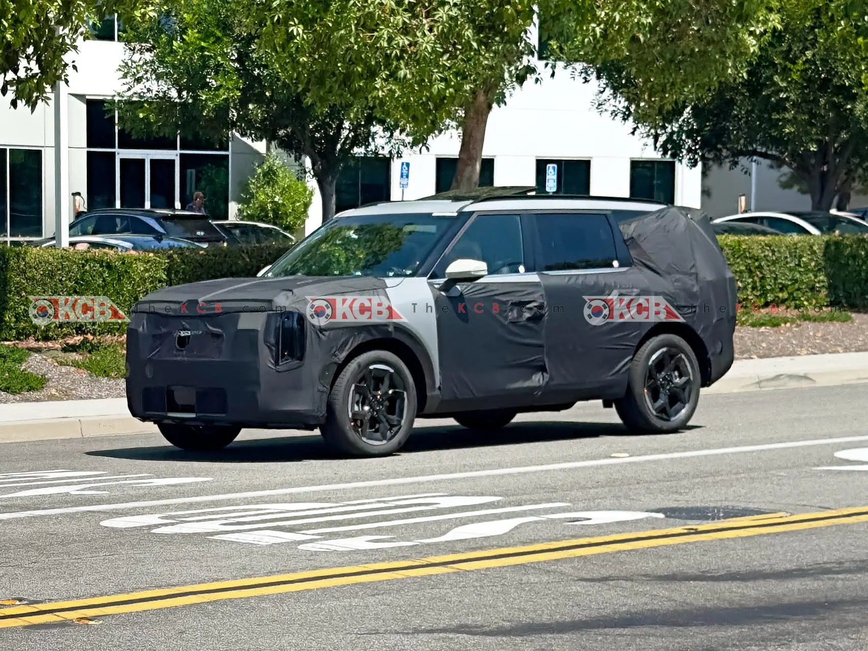 측면부는 박시한 실루엣에 정통 SUV 스타일을 갖췄으며, 현대차 디 올 뉴 팰리세이드와 유사한 분위기다. 기존 텔루라이드의 인기 요인을 그대로 이어 받아 디테일을 업그레이드할 것으로 보인다. 휠도 EV9과 유사하지만 차별화된 디자인이다.
