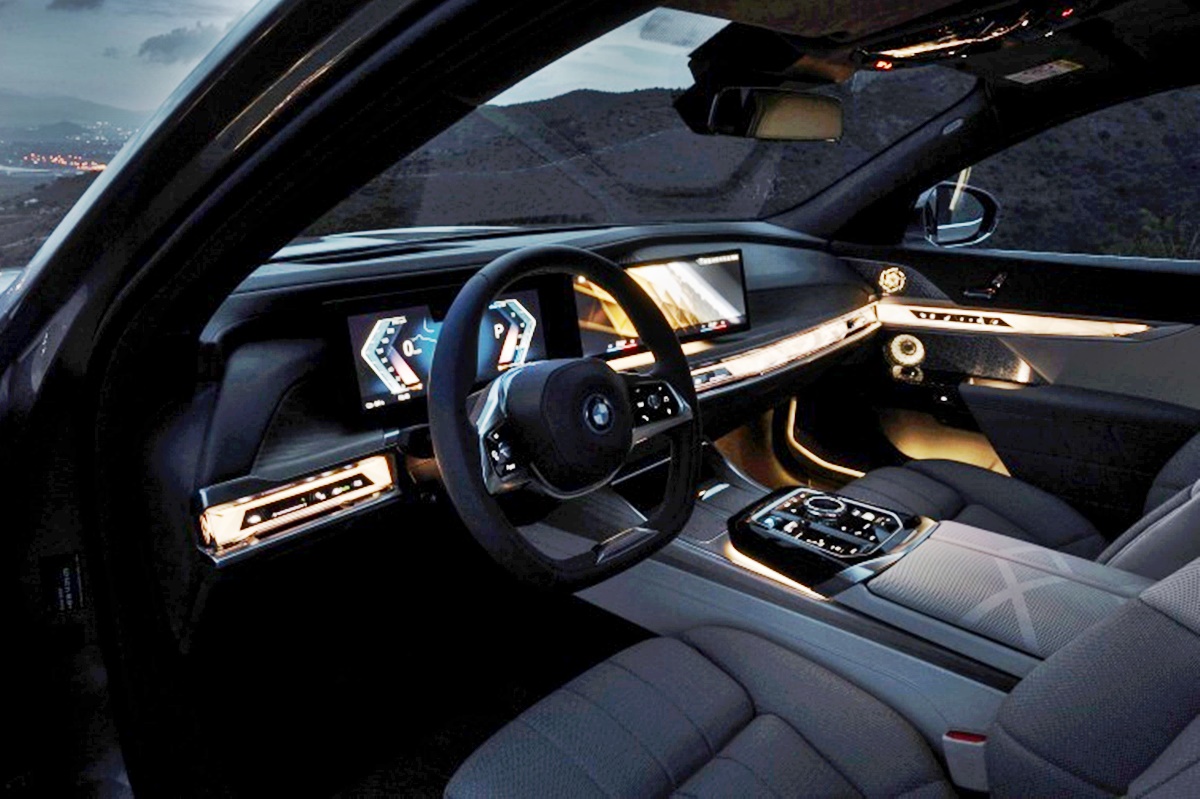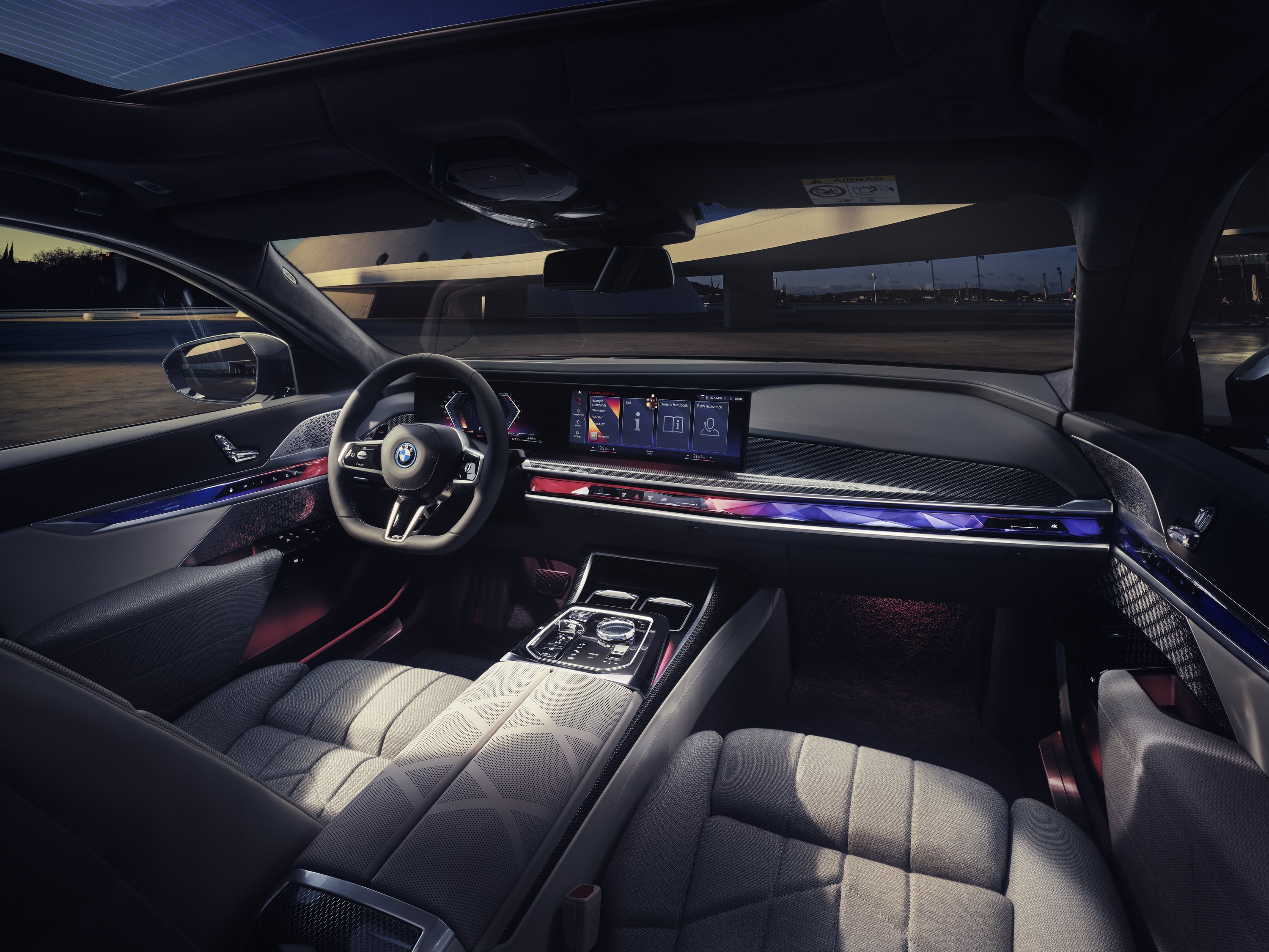 내장에서는 차량 트림과 관계없이 5가지 인테리어 트림이 선택 가능하며 최상급 BMW 인디비주얼 그란 루쏘 인테리어 풀-레더 메리노 시트 또는 메리노-울-케시미어 조합 시트가 적용된다.