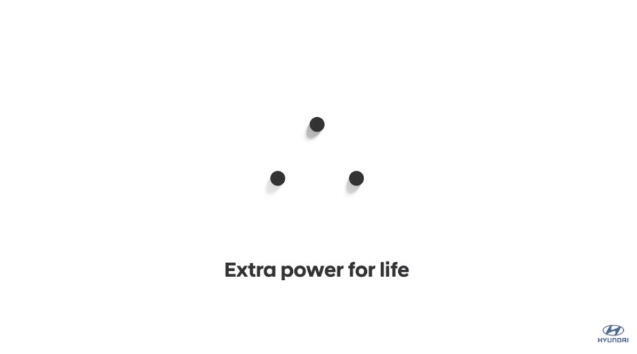 무엇보다 아이오닉 5의 장점을 세 가지로 나눠 설명하고 있는데, 먼저 ‘생명을 위한 엑스트라 파워(Extra Power for Life)’는 새롭게 개발된 ‘V2L(Vehicle-to-Load)’ 기술을 보여준다.