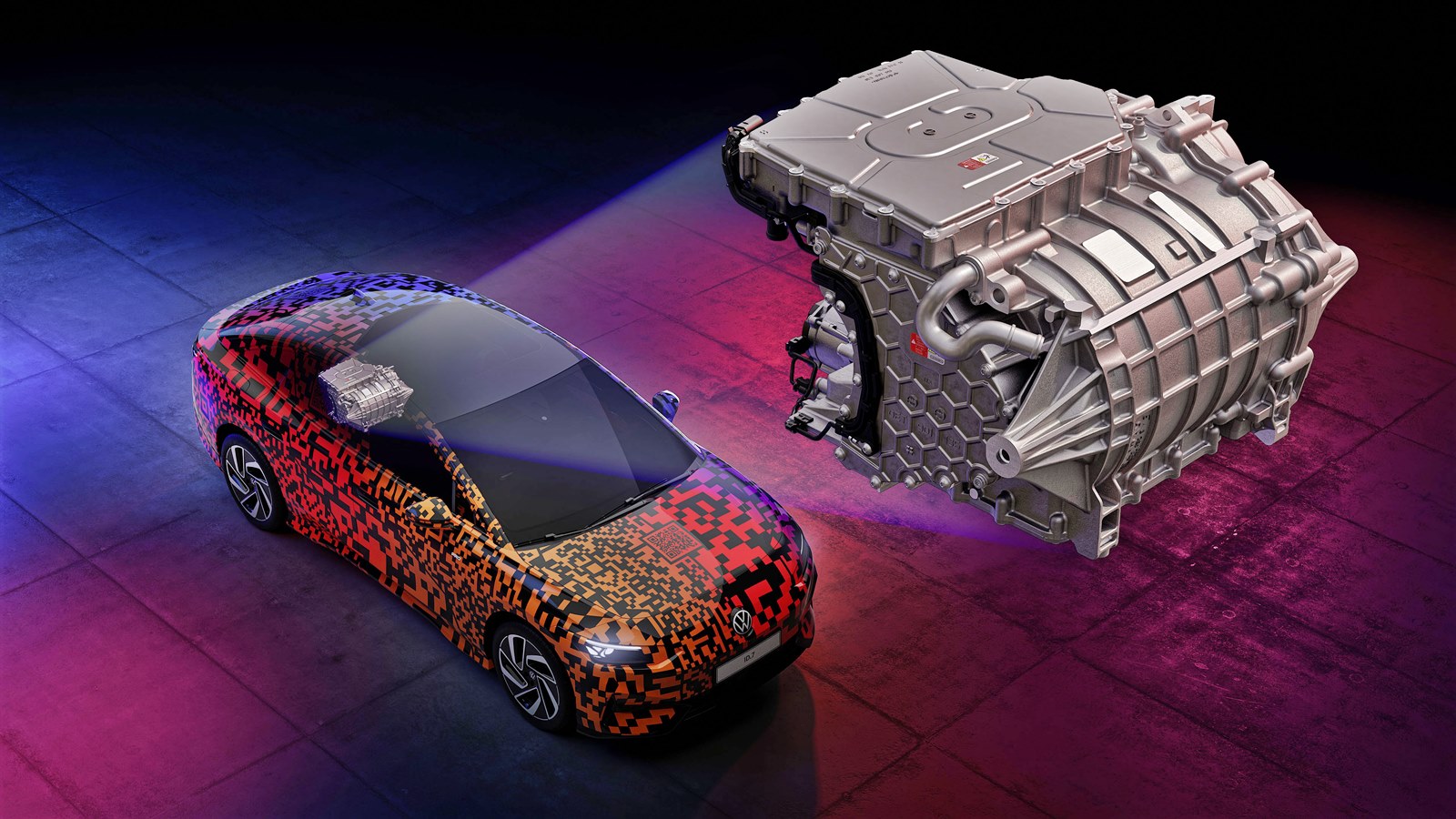 이번 CES에서 폭스바겐은 ID.7의 지능 컨셉을 특별한 방법으로 소개한다. 디지털 형식으로 디자인된 위장막을 두른 ID.7은 차량을 인터랙티브하게 밝히는 독특한 페인트워크가 적용돼 있다. 총 40개 층에 걸쳐 완성된 페인트워크 중 일부는 전도성을, 일부는 절연성을 갖추고 있다.