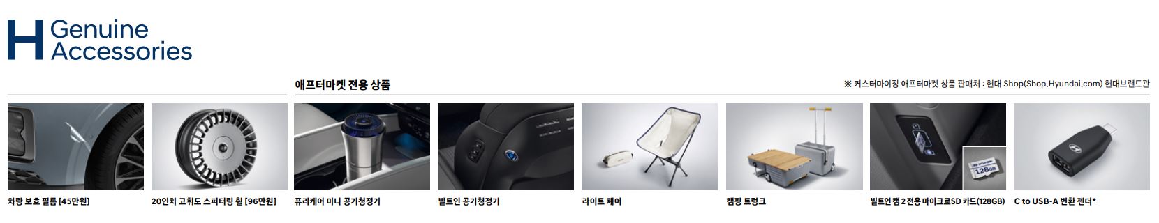 이밖에 H Genuine Accessories 추가 선택사양으로 차량 보호 필름(45만원), 20인치 고휘도 스퍼터링 휠(96만원) 등이 제공된다. 이를 모두 추가하면 차량 가격은 총 5,851만원이다. 여기에 찻값의 취등록세 7%인 약 409만원을 더하면 6,260만원이다.