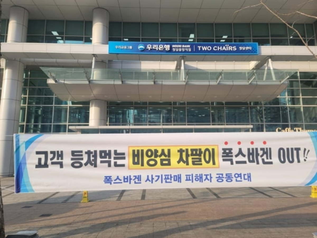 폭스바겐 차량을 구매한 소비자 40여명은 '폭스바겐 사기판매 피해자 공동연대' 모임을 결성, 앞서 서울 강남구 청담동 폭스바겐코리아 본사 앞에서 시위를 열고 연말 가격할인에 대한 폭스바겐의 해명과 본사 차원의 사과, 재발 방지 대책, 차액 보상을 요구했다.