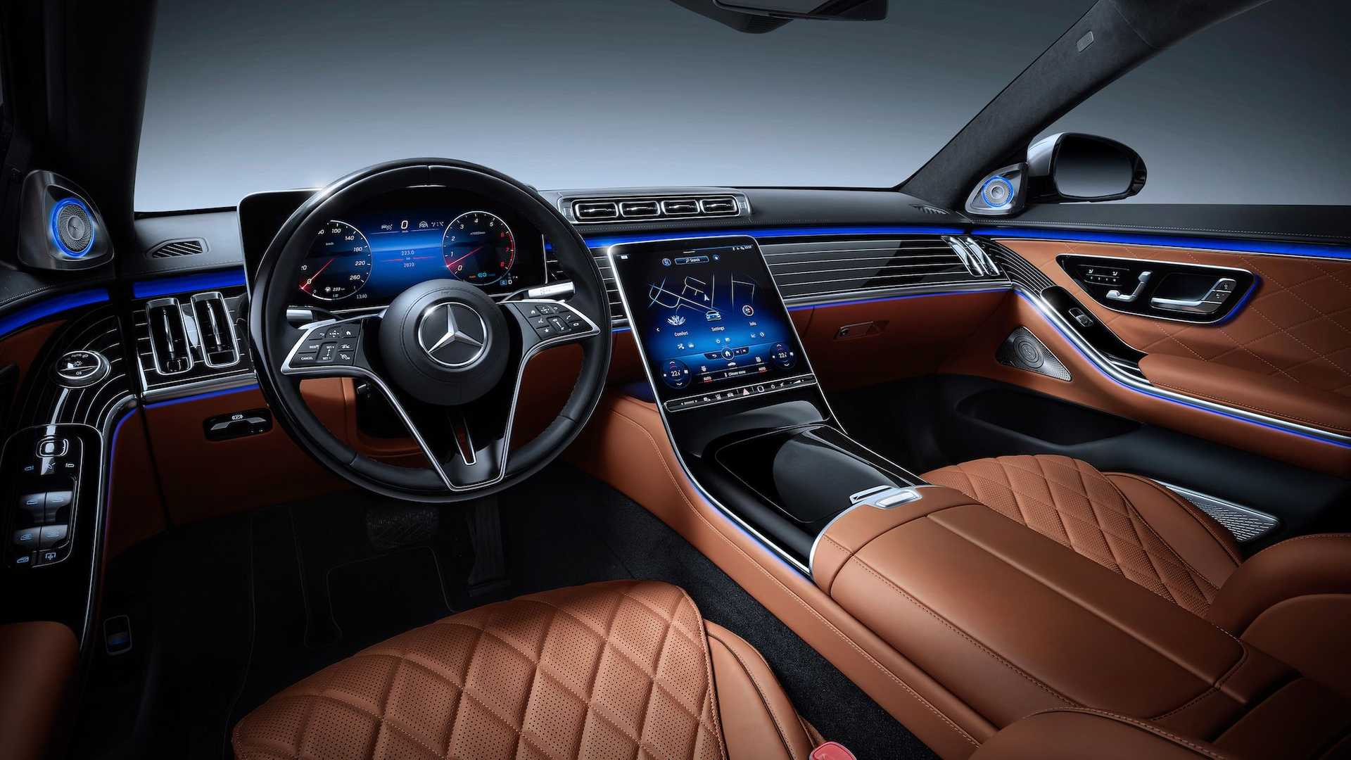 운전석에는 3D 디지털 클러스터와 센터페시아의 12.8인치 터치형 인포테인먼트 디스플레이, 2열 인포테인먼트 시스템을 갖췄고, 헤드업 디스플레이와 센터페시아 디스플레이는 증강현실(AR) 기술이 적용됐다. 이밖에 광섬유와 무려 250개의 LED로 구현되는 엠비언트 라이트 역시 신형 S클래스의 특징 중 하나다.
