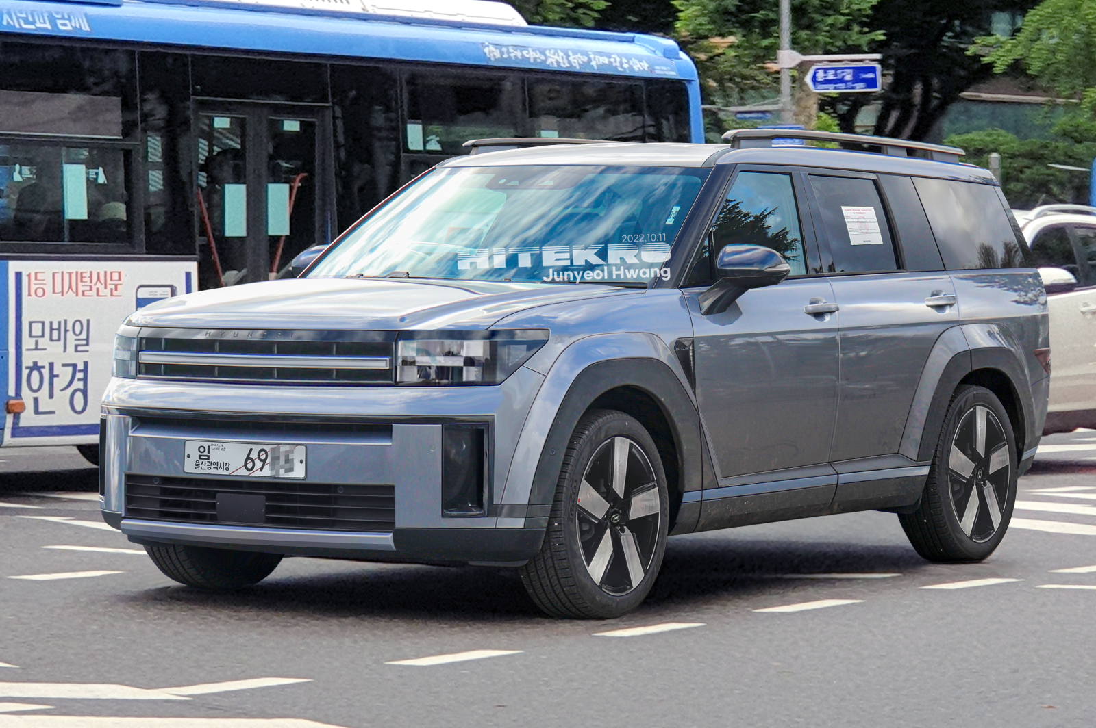 측면부는 마치 랜드로버 ‘신형 디펜더 110‘ 모델을 연상케 하는 각진 실루엣과 비율, 디테일 요소 등이 돋보인다. 특히, 경쟁모델인 기아 쏘렌토에 판매량이 밀린 만큼, 차체를 팰리세이드 수준으로 대폭 키운 점도 주목할 만한 요소다.