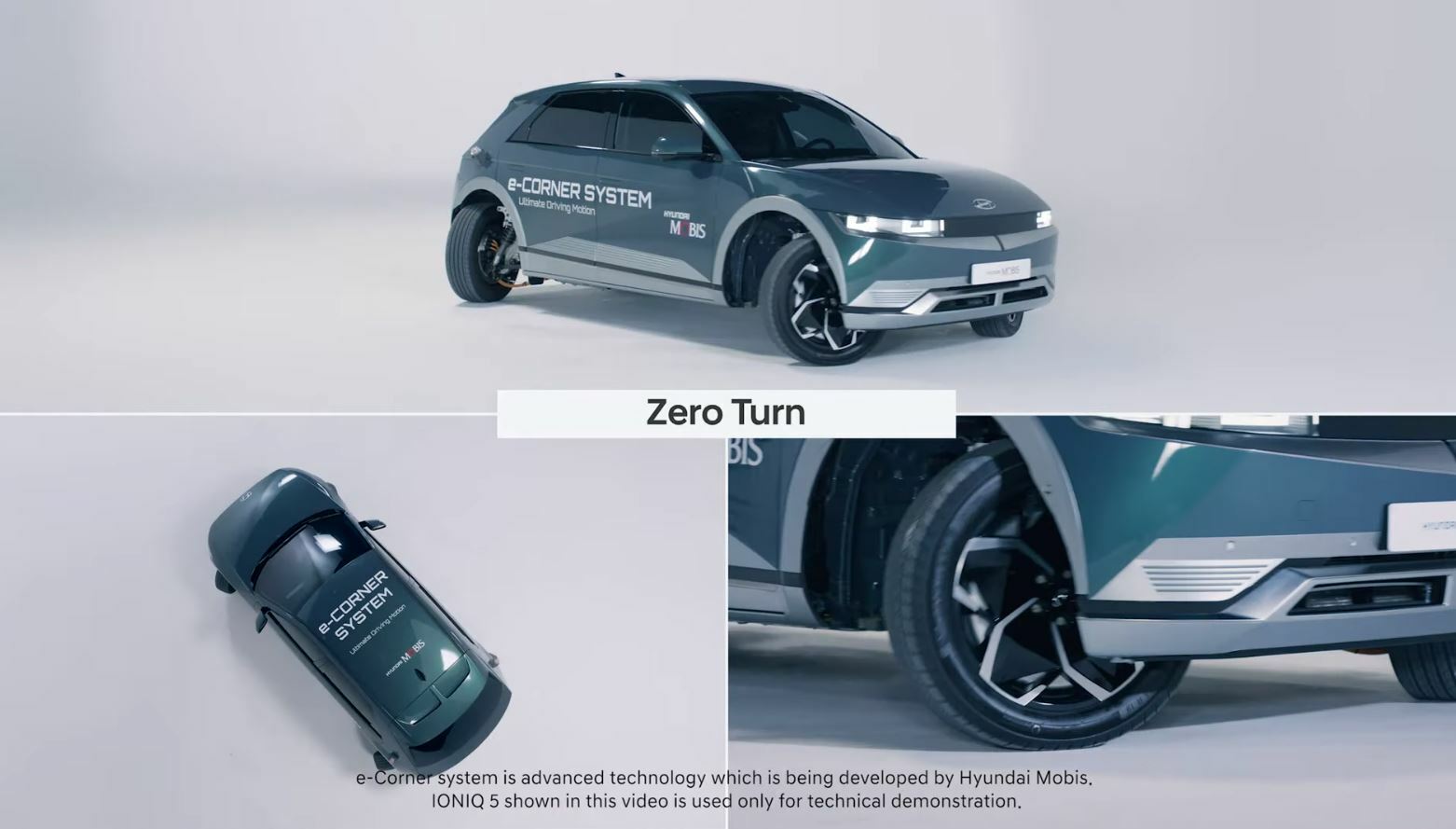 화면 속 테스트카는 엠비전 TO 컨셉트와 같은 ‘수평 이동’을 시작으로 제자리에서 한 바퀴 도는 '제로 턴', 대각선 주행, 왼쪽 앞바퀴를 축으로 삼아 차량 뒷부분을 한 바퀴 돌리는 '피벗 턴'을 순서대로 보여줬다.