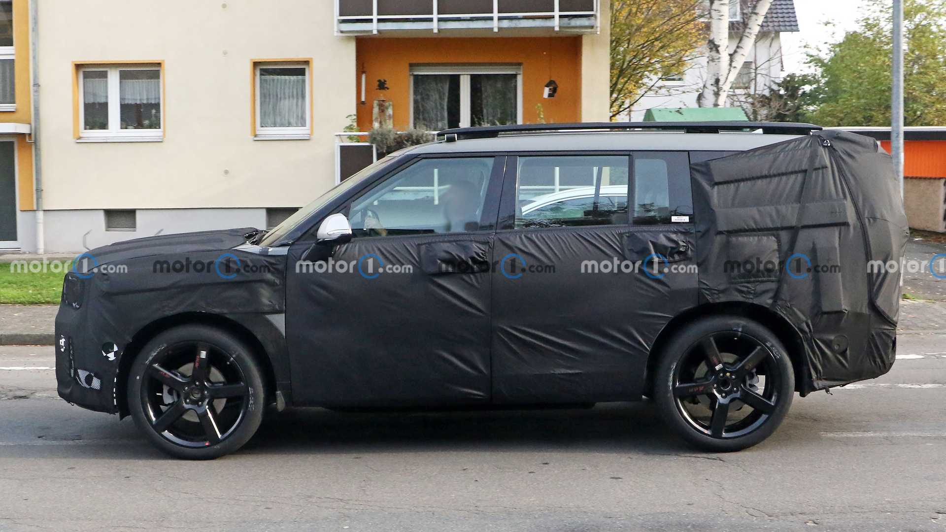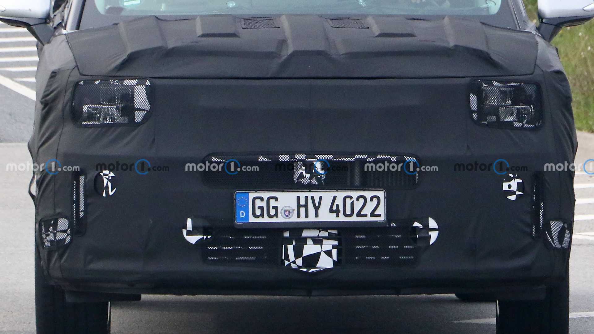 여전히 두꺼운 위장막으로 덮여 구체적인 디자인은 알 수 없지만, 전면부는 사각형태의 LED 헤드램프와 현대차의 ‘H’를 형상화한 주간주행등(DRL) 그래픽을 적용해 독특하고 차별화된 요소를 보여준다. 기아 모하비보다도 각지고 웅장한 모습을 보여줄 것으로 기대된다.