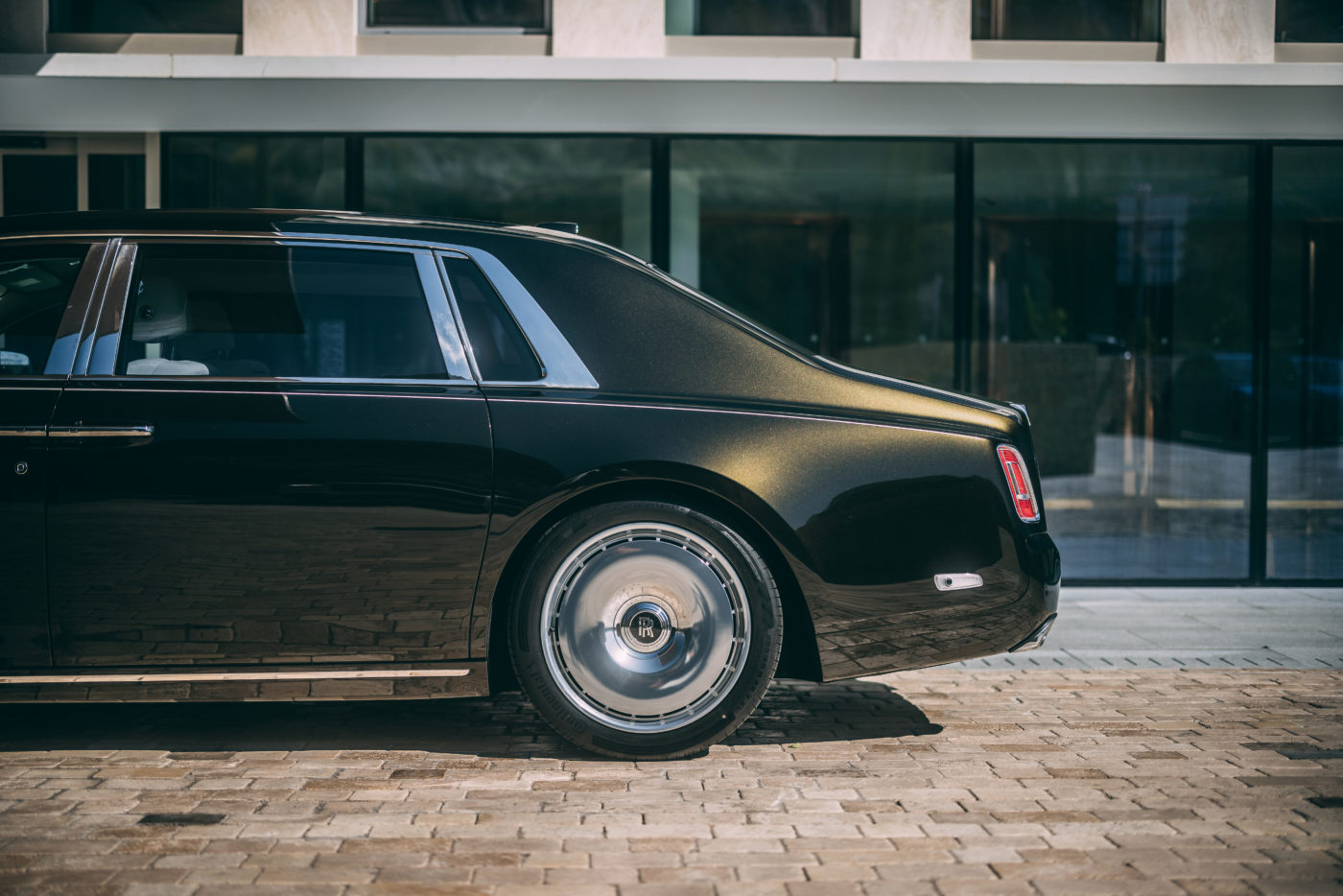 차량의 측면을 완성하는 휠 세트는 두 가지 형태로 제공된다. 3D 밀링 기법으로 제작된 스테인리스 스틸 휠을 전체 또는 부분 광택으로 주문하거나 1920년대 롤스로이스의 낭만을 떠올리게 하는 디스크 휠을 선택할 수 있다. 광택 스테인리스 스틸로 제작된 디스크 휠은 블랙 래커로 마감해 마치 지상 위를 비행을 하고 있는 듯한 느낌을 선사한다.