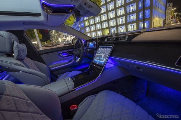 운전석에는 3D 디지털 클러스터와 센터페시아의 12.8인치 터치형 인포테인먼트 디스플레이, 2열 인포테인먼트 시스템을 갖췄고, 헤드업 디스플레이와 센터페시아 디스플레이는 증강현실(AR) 기술이 적용됐다. 이밖에 광섬유와 무려 250개의 LED로 구현되는 엠비언트 라이트 역시 신형 S클래스의 특징 중 하나다.