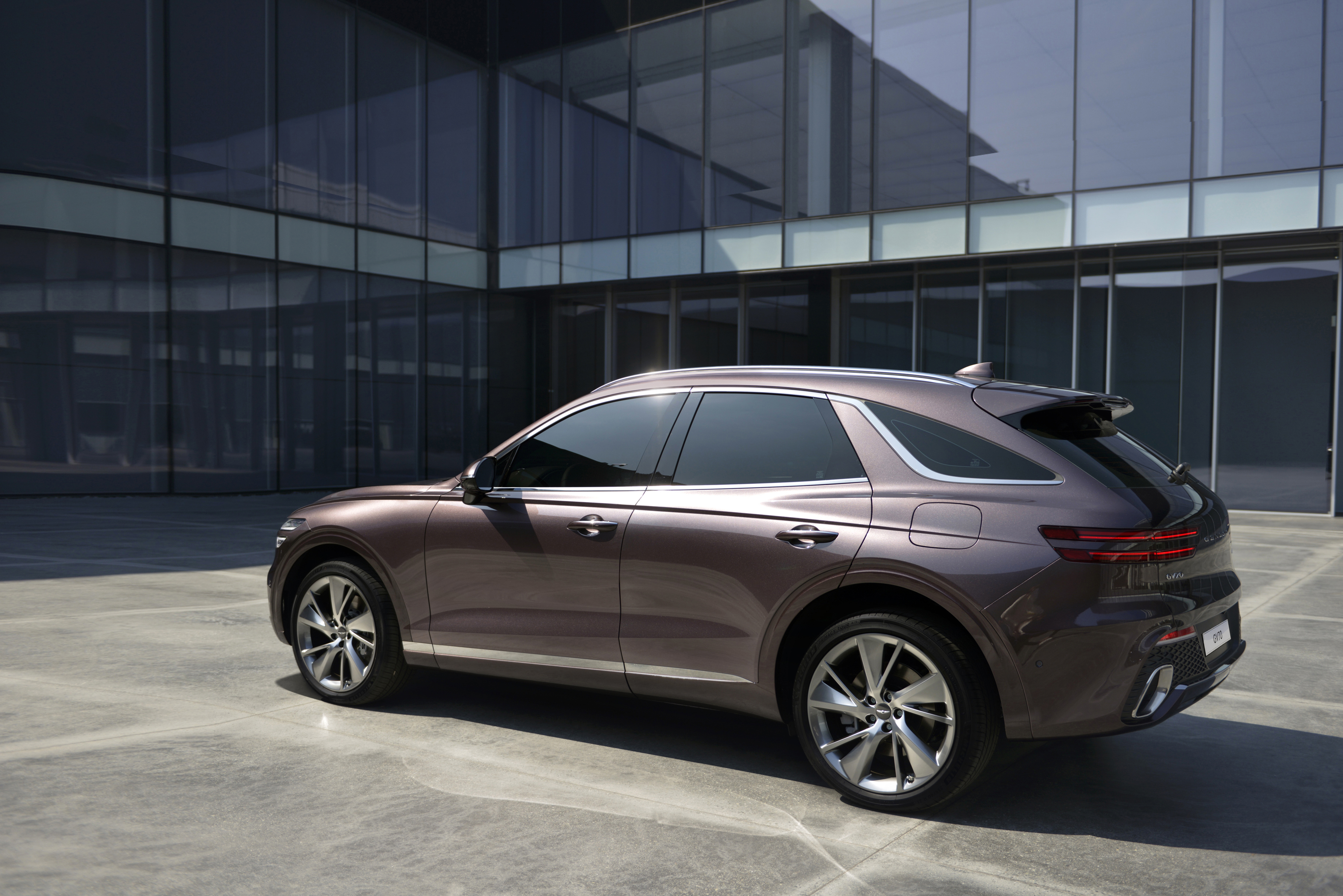 제네시스는 고유의 날개형상 엠블럼을 형상화한 크레스트 그릴, 쿼드램프 등 제네시스만의 디자인 정체성을 계승하는 요소와 순도 높은 유선형 라인의 완벽한 구현으로 역동적이면서도 SUV의 실용성을 동시에 만족하는 GV70만의 독보적인 디자인을 완성했다.