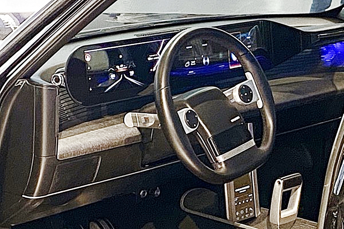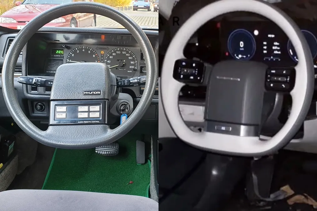 또 앞서 유출된 실내는 과거 ‘각 그랜저’로 불렸던 1세대 모델의 디자인 헤리티지를 현대적으로 재해석한 모습이다. D컷 스티어링 휠도 혼과 스포크 부분이 상당히 유사하고, 센터페시아도 수평형 레이아웃과 함께 각을 살린 디자인이 강조됐다.
