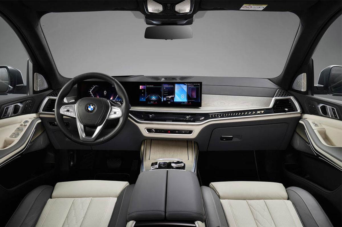 BMW 뉴 X7의 실내는 더욱 미래적이면서도 럭셔리하게 진화했다. 먼저 대시보드 위에는 최신 BMW 커브드 디스플레이가 장착된다. 12.3인치 인포메이션 디스플레이와 14.9인치 컨트롤 디스플레이로 구성된 BMW 커브드 디스플레이는 운전자 중심으로 설계돼 드라이빙에 집중할 수 있도록 돕는다. 간결한 디자인의 센터페시아와 새로운 기어 셀렉터 레버가 적용된 센터콘솔은 앞좌석에 한층 여유로운 공간감을 제공한다.