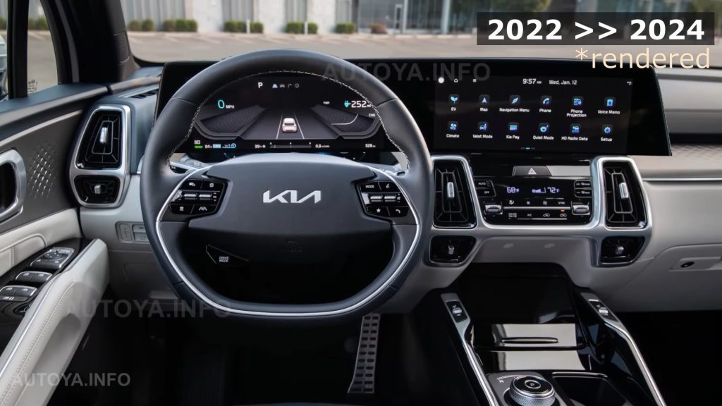 또 실내는 현행 모델과 레이아웃은 크게 다르지 않을 것으로 보인다. 예상도에서도 스티어링 휠만 전용전기차 ‘EV6’의 것을 적용한 정도다. 이외에 새로운 와이드 디스플레이와 인포테인먼트 시스템이 적용되며, 일부 내장 마감재 변경, 최신 안전 및 편의사양 등이 탑재될 것으로 알려졌다.