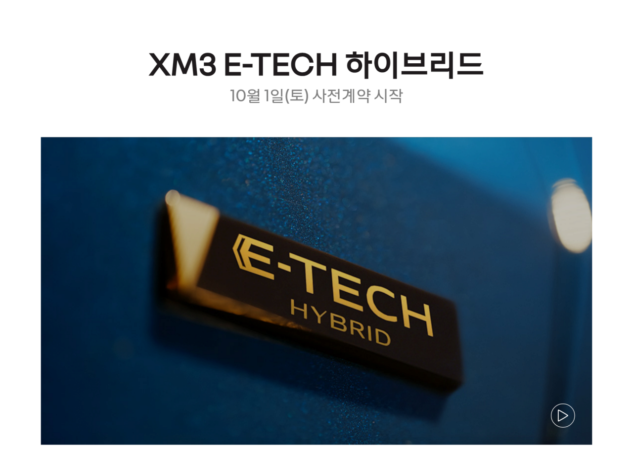 XM3 E-TECH 하이브리드는 트렌디한 기술로 흥미롭고 놀라운 주행 경험을 선사하는 가장 전기차에 가까운 하이브리드 모델을 표방한다. F1 다이내믹 블레이드 범퍼를 새롭게 적용하고 XM3 E-TECH 하이브리드 전용 컬러를 새롭게 도입하며 디자인 면에서도 더욱 돋보일 수 있도록 업그레이드 했다.