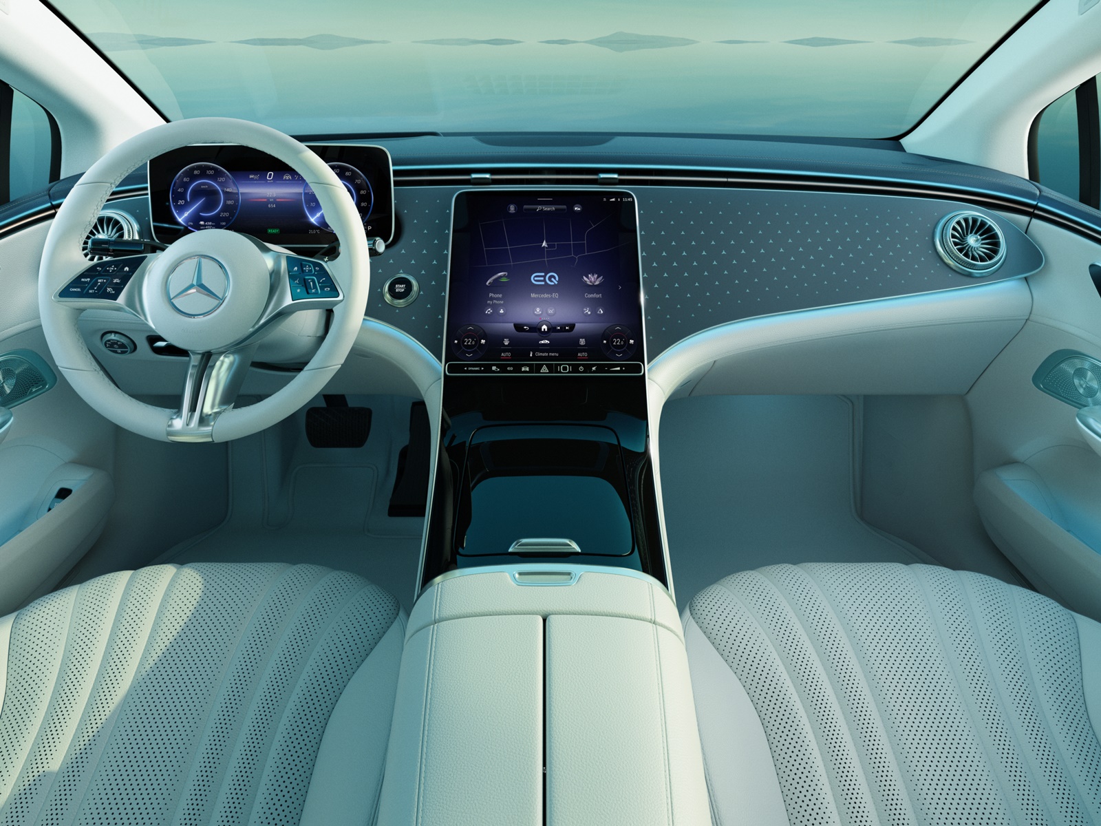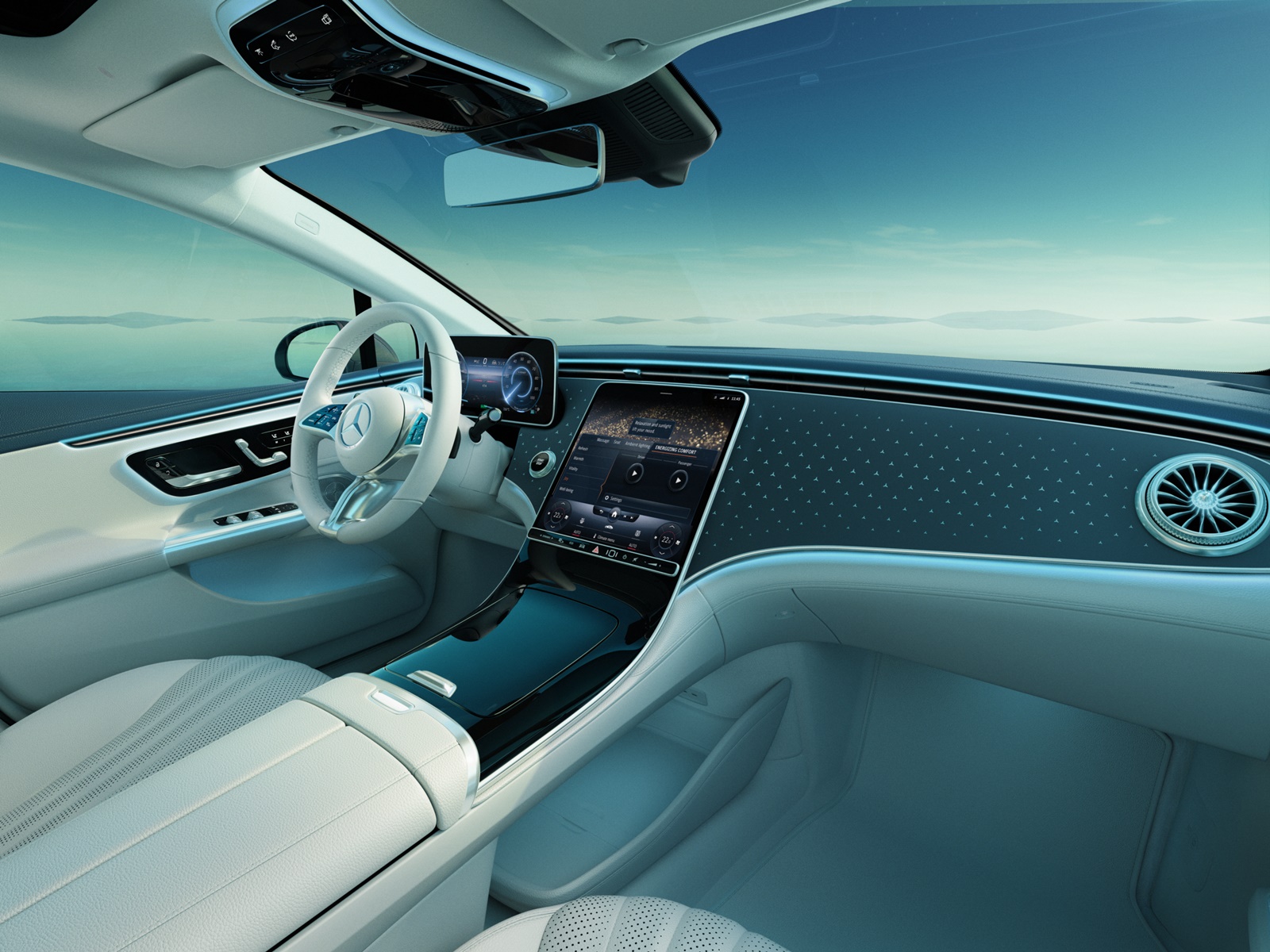 더 뉴 EQE 350+에는 다양한 최신 기술 및 엔터테인먼트 기능들이 적용돼 탑승객들의 모든 감각을 만족시킨다.