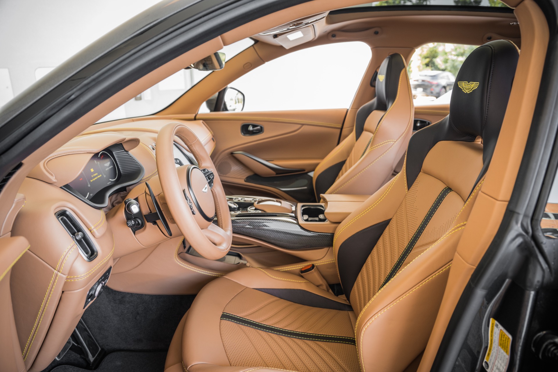 스포츠 시트는 전체적인 인테리어를 스포츠 테마로 인식시키는 필수 요소이다. 모든 시트는 16방향으로 조정하는 전자식 스위치를 포함한다. 가죽과 알칸타라 등 최고급 소재가 적용됐으며, 머리 받침에 각인된 애스턴마틴 로고 외에 등받이부터 이어지는 스트라이프가 스포티함을 배가시킨다.